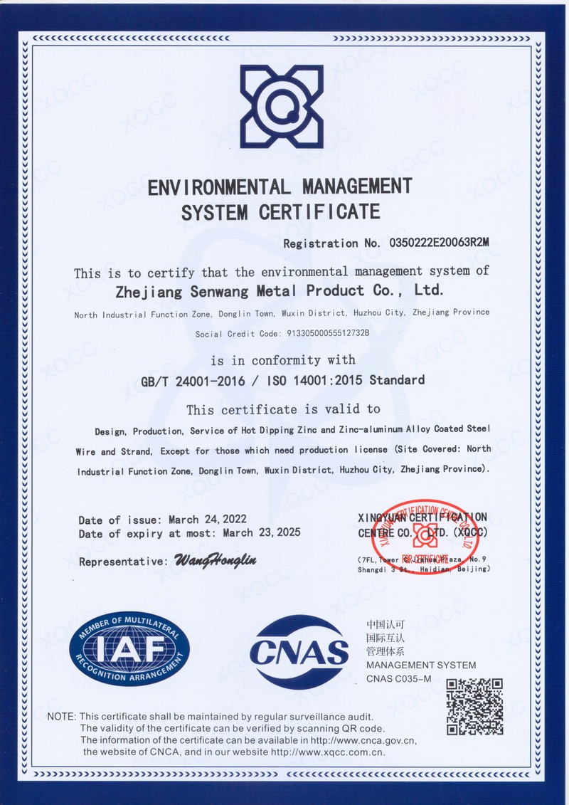浙江森旺金屬制品有限公司成立于2012年,坐落湖州市吳興區(qū)東林鎮(zhèn)工業(yè)功能區(qū)。公司專(zhuān)業(yè)從事各類(lèi)鍍鋅鋼絲、鋼絞線等產(chǎn)品的開(kāi)發(fā)及生產(chǎn)。目前產(chǎn)品已廣泛應(yīng)用于各類(lèi)通信光電纜,電力輸送,電氣化鐵路工程,各類(lèi)堤壩防護(hù)及農(nóng)業(yè)溫室等工程領(lǐng)域。公司秉承“追求卓越品質(zhì),創(chuàng)建卓著信譽(yù)”的經(jīng)營(yíng)理念,始終堅(jiān)持專(zhuān)業(yè)化、規(guī)?;慕?jīng)營(yíng)模式。